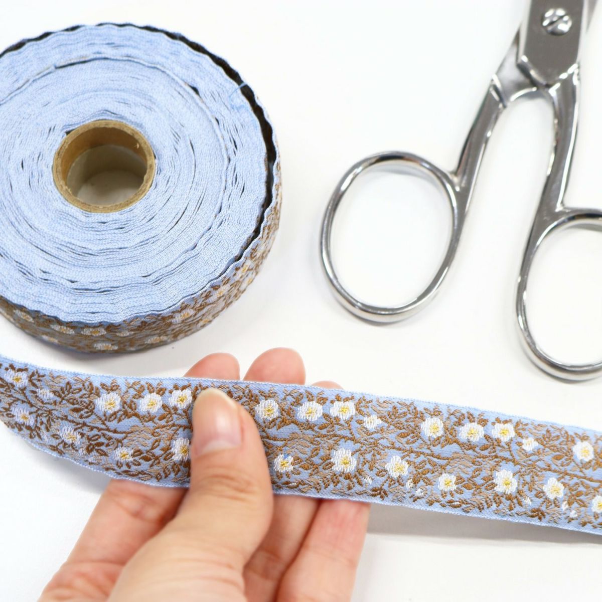 他の画像を見る PAU100502-5 リボン 高級ジャガード織 ジャガードリボン 織リボン カフカリボン ドイツリボン インポート 巾約5cm (50cm単位の切り売り) ¥ 1,309 税込 お気に入りに登録する