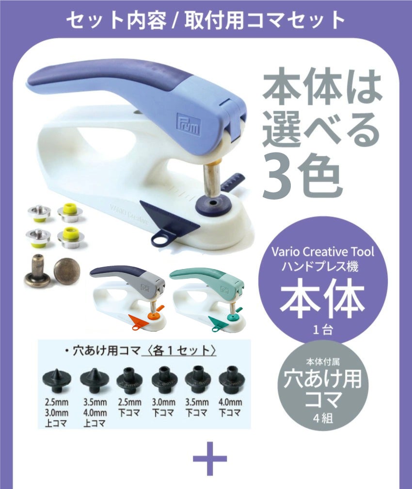 他の画像を見る VARIO-KSM-AG ハンドプレス機+カシメ+コマセット 3点セット ハンドプレス VARIO Creative Tool 選べるプレス機 ¥ 15,400 税込 お気に入りに登録する