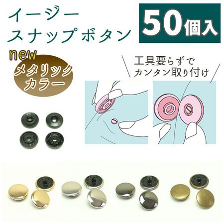 他の画像を見る F12-311-314-50pcs 【お徳用】イージースナップボタン メタリック 14mm 50組入 打ち具がいらない メタル スナップ ボタン ぼたん 釦 イージースナップボタン 14mm 50組 ¥ 5,830 税込 お気に入りに登録する